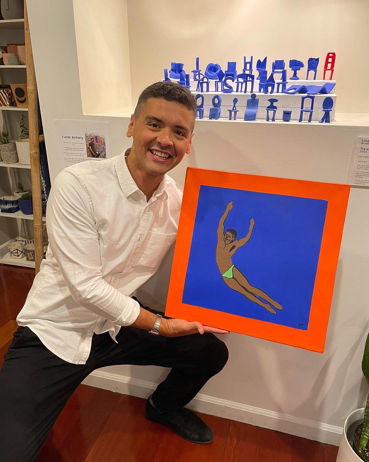 “Through my art, I share my personal experiences around the world, exploring different media to express my unique vision. Each work reflects my perspective on places I have visited and moments I have lived, always guided by the high contrast and intensity of the colors that define my work. My goal is to transport the viewer into my orange and blue universe, where simplicity and beauty come together to evoke joy and connection.”